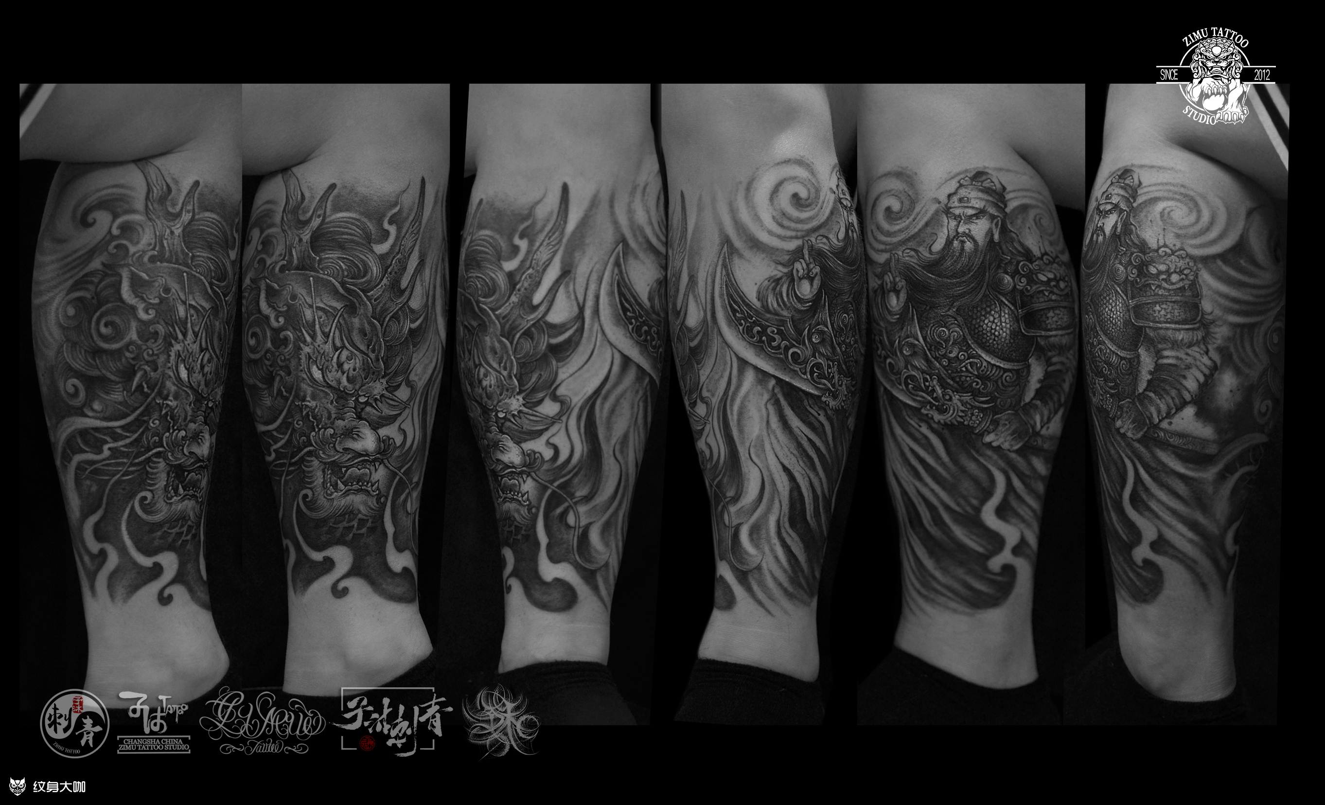 包小腿 关羽 麒麟 黑灰 新传统