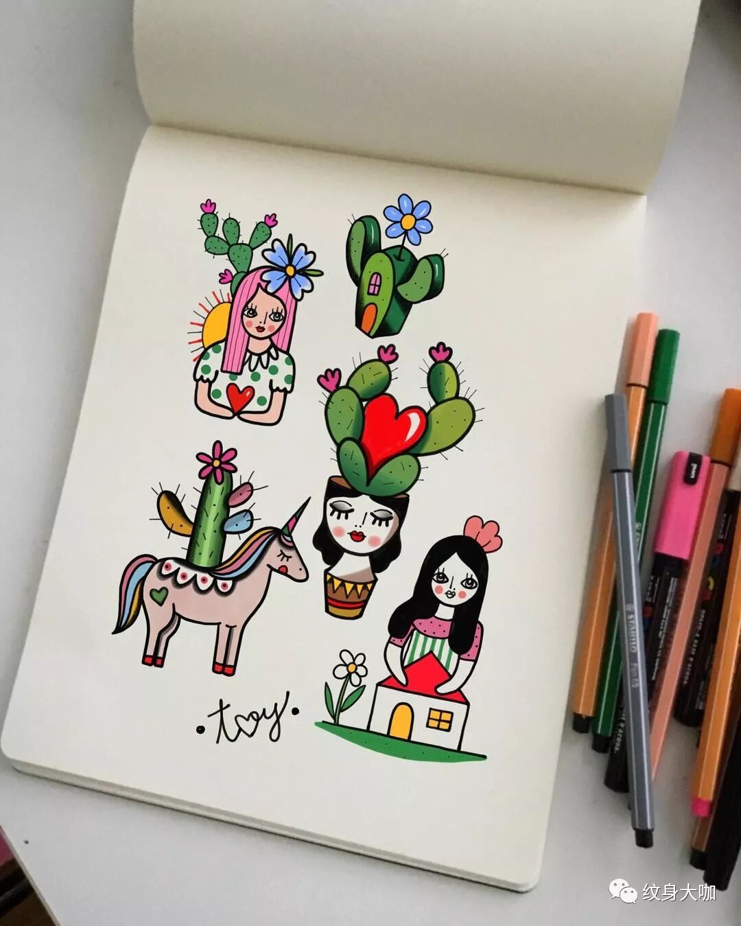 纹身手稿素材第516期:仙人掌