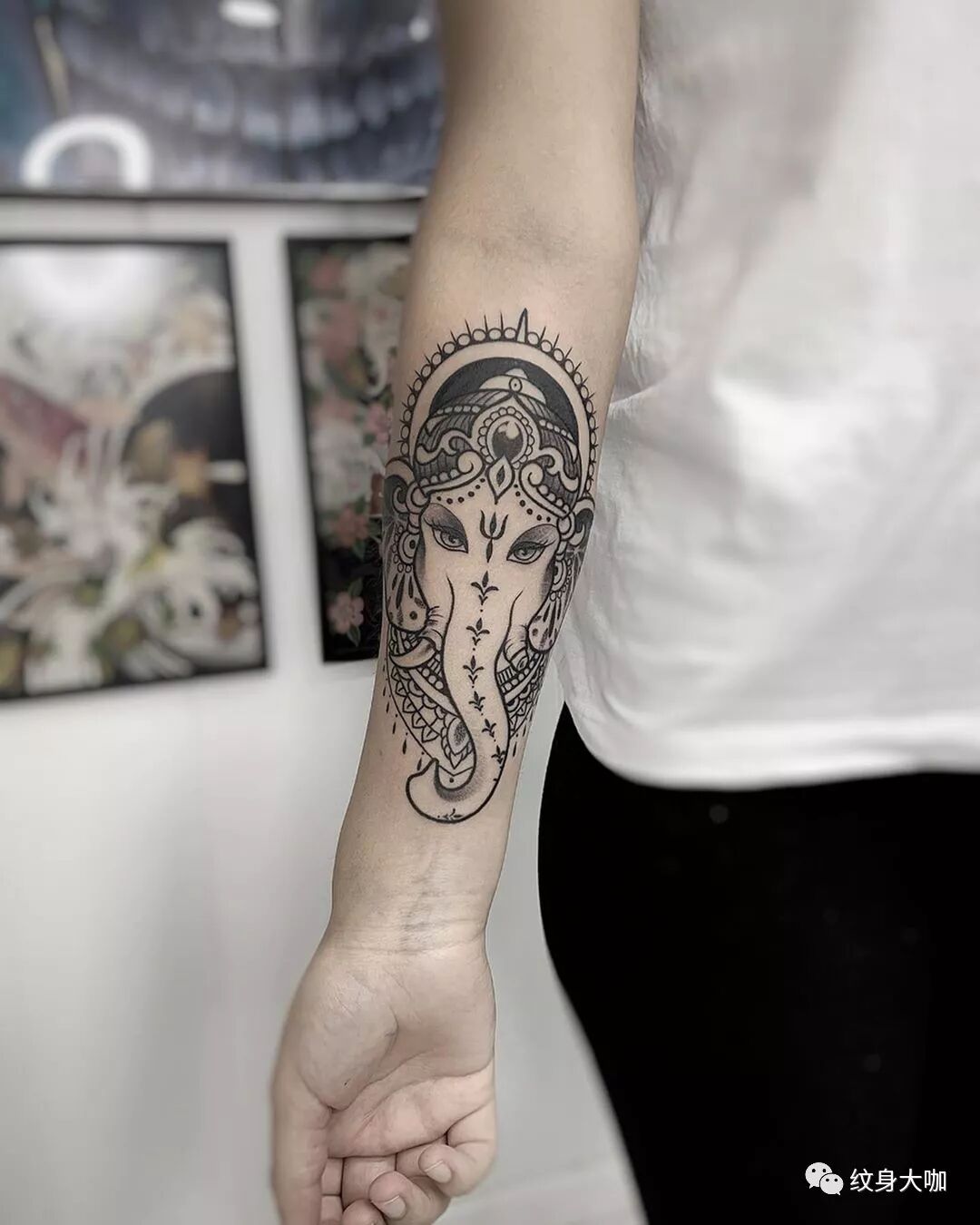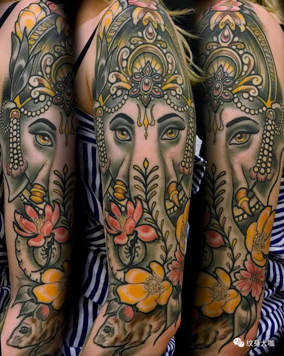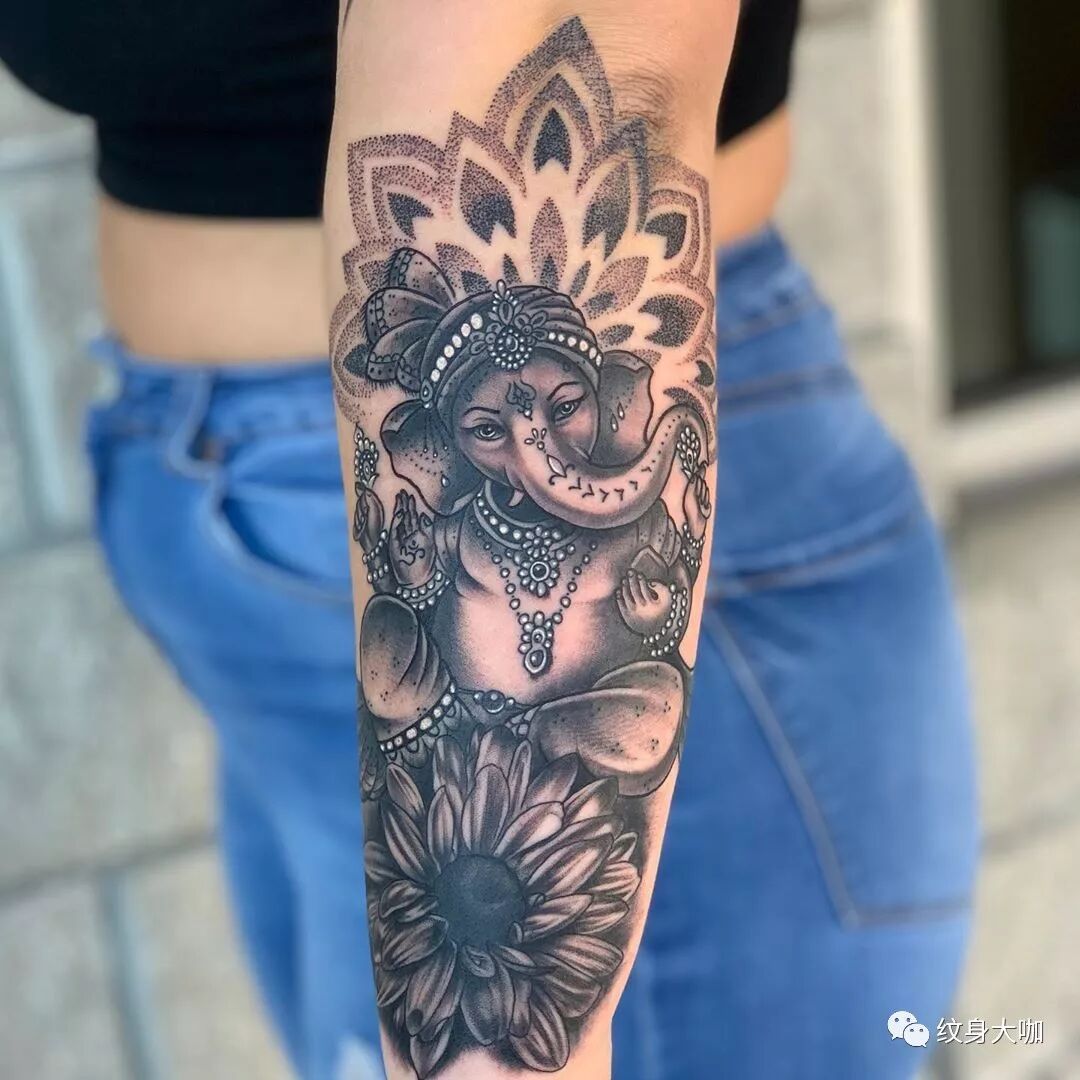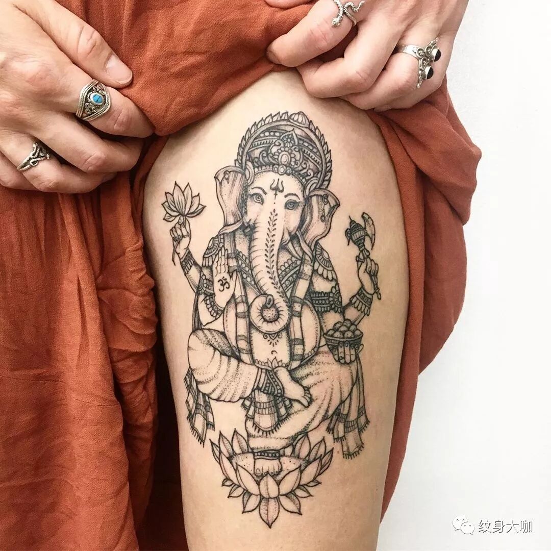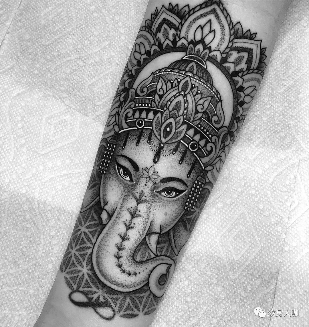 纹身手稿素材第546期:象神纹身